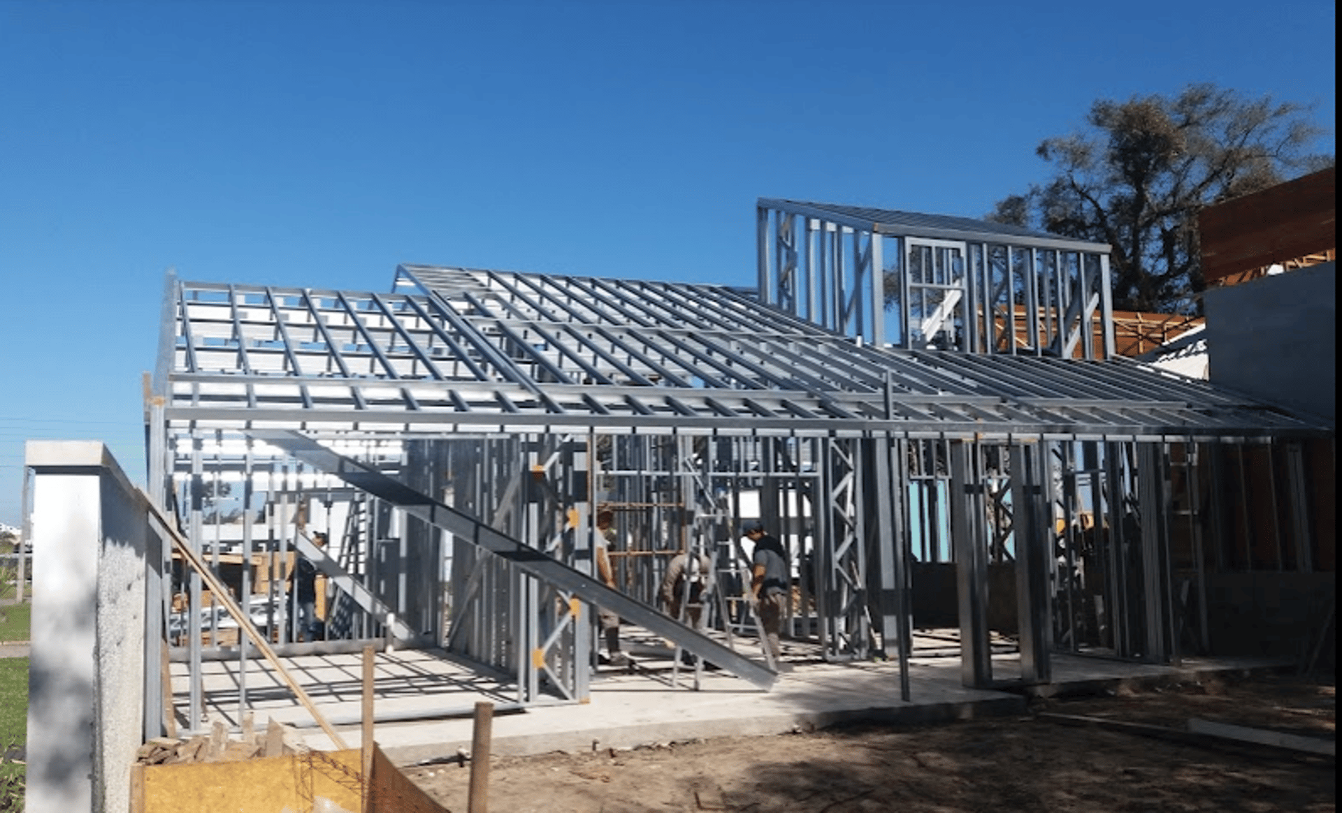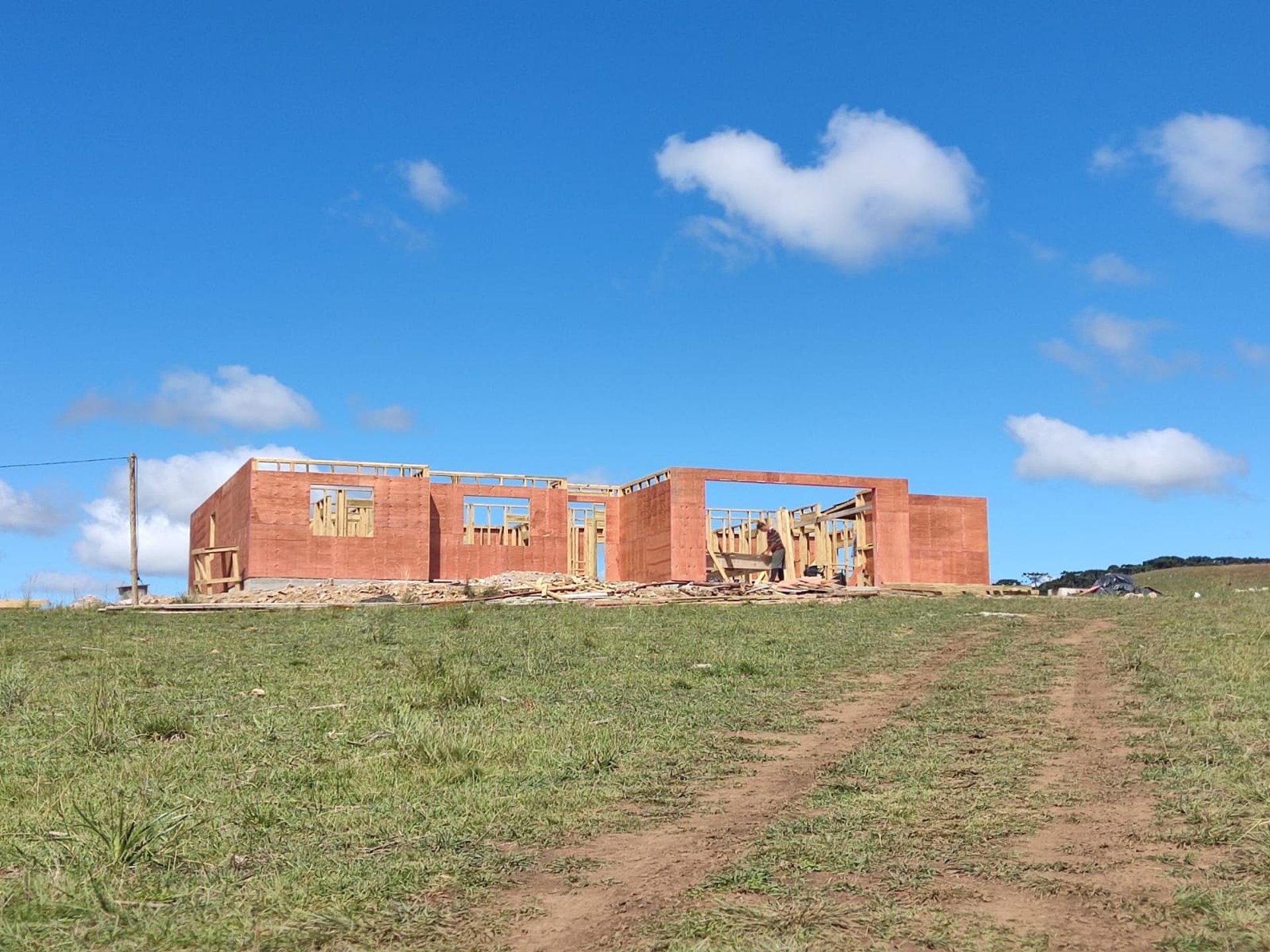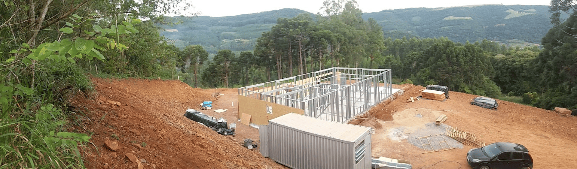 Podemos "enfardar" uma casa de steel ou wood frame em Taquara RS e transporta-la até sua fundação (em qualquer local da América Latina), montar o "grosso da obra" de até 100m² em 8 semanas, você executa todo o restante da construção: fundações, instalações elétricas e hidráulicas embutidas, telhados e acabamentos em geral.