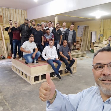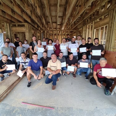 Em dezembro de 2020 ministrei a 1º turma de wood frame da história do Brasil, na cidade de Taquara RS, com 24 alunos.